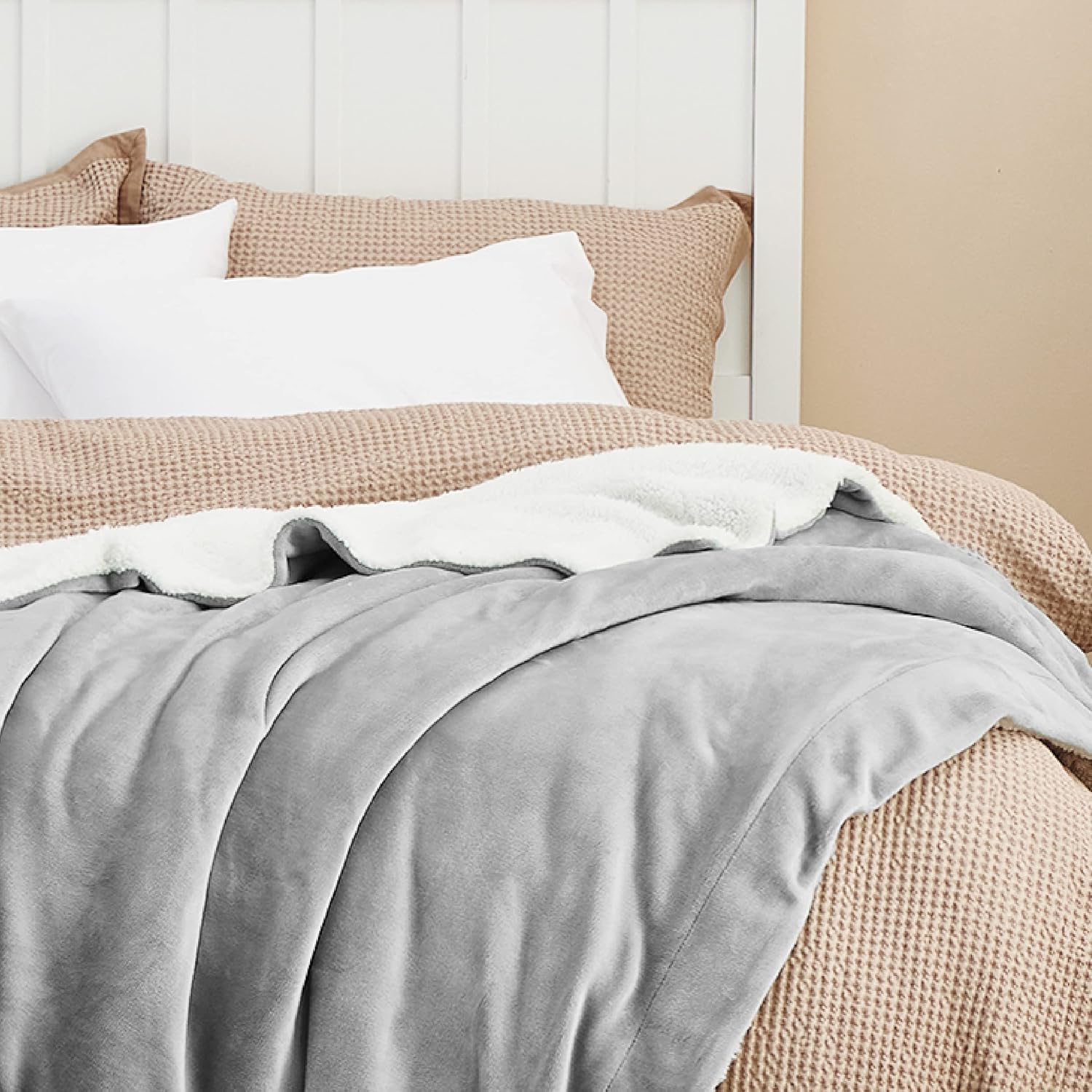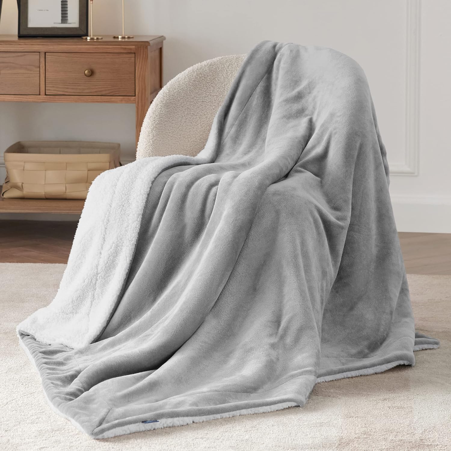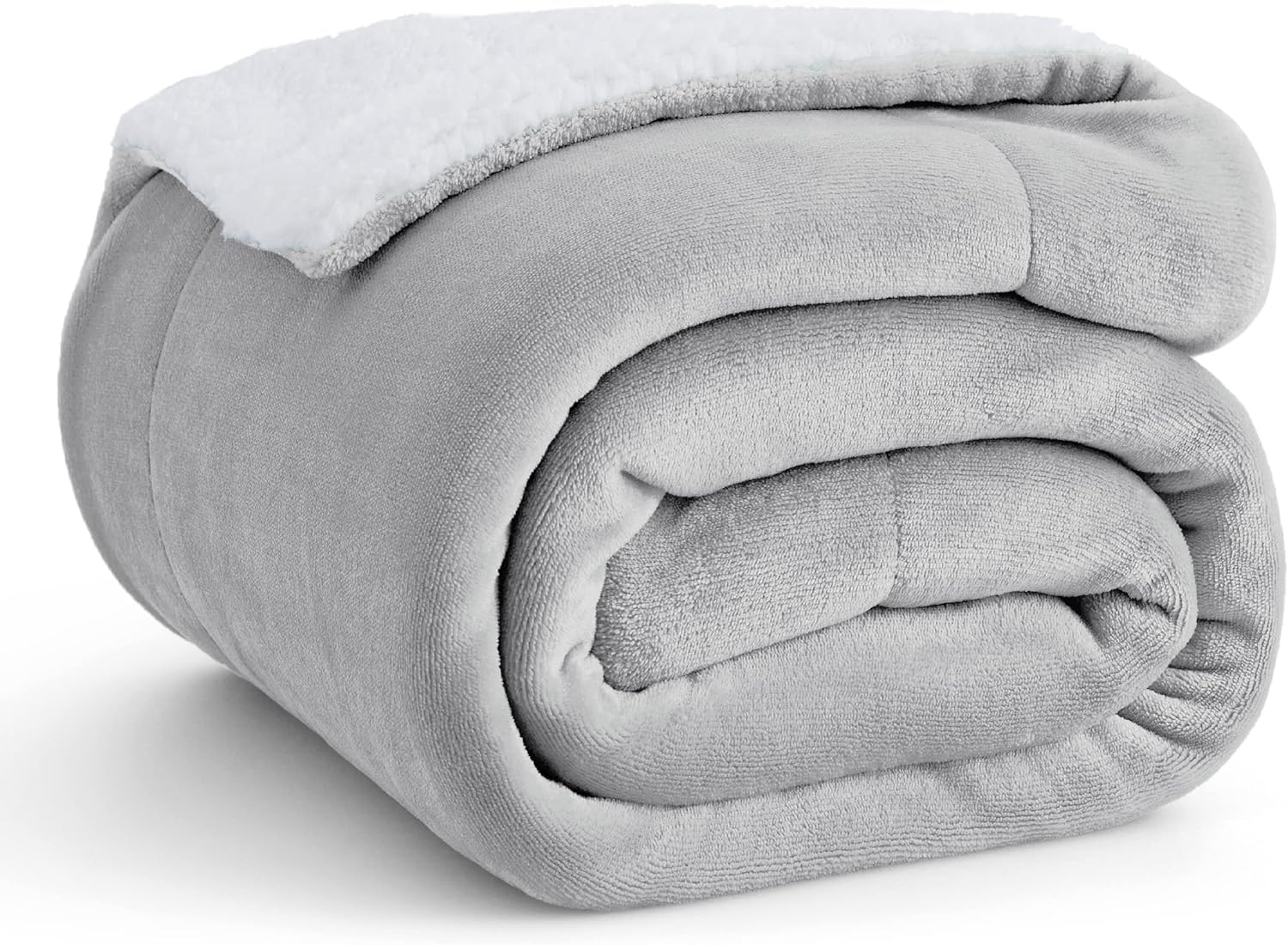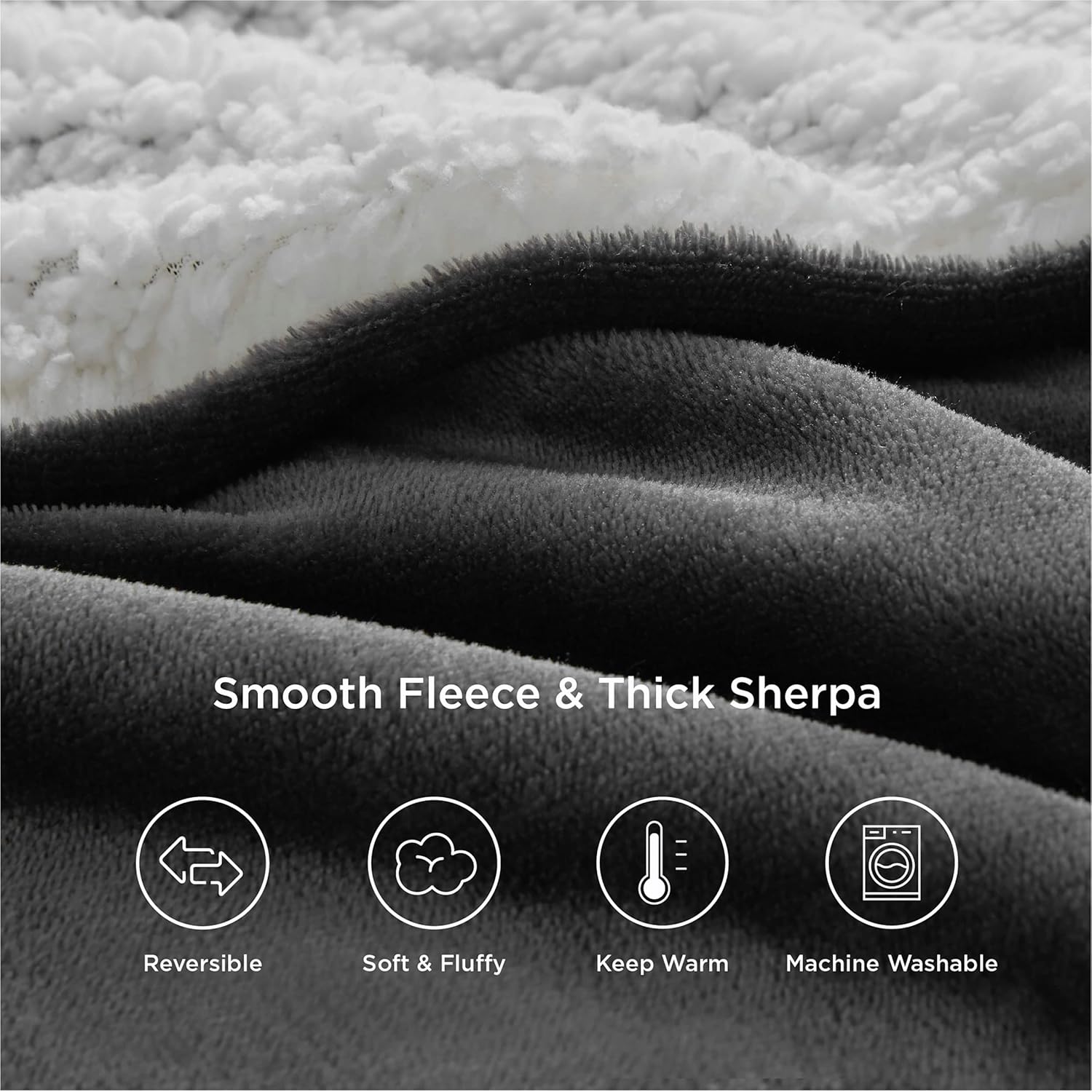 GentleSoft Sherpa Fleece Throw Blanket Twin Size for Couch - Thick and Warm Throw for Women and Men, Soft Fuzzy Plush Blanke for Winter, Grey, 60x80 Inches